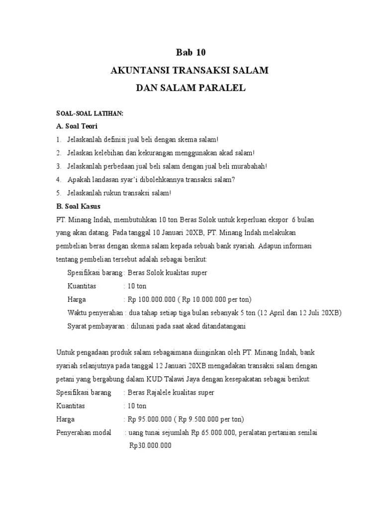 Contoh Soal Akuntansi Salam Paralel Pdf : Contoh Soal Akuntansi Syariah Imas Staff Soal Pdf Nbsp Berikut Ini Daftar Standar Akutansi Keuangan Yang Mengatur Transaksi Syariah Saat Ini A Psak 59 B Psak 59 Sampai Dengan Pdf Document - Salam paralel dengan syarat pelaksanaan transaksi salam kedua tidak tergantung pada.